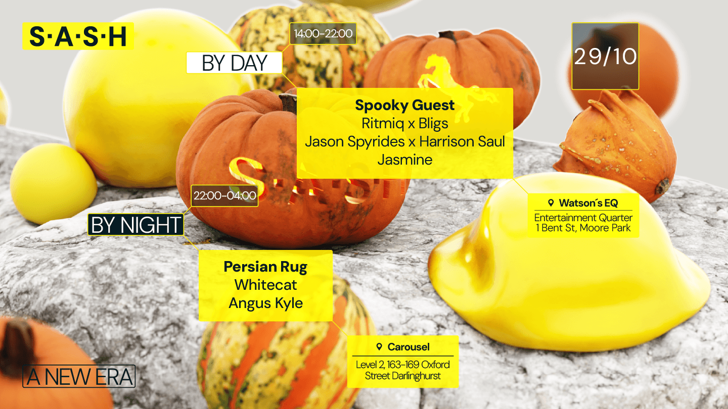 Kicking us off, and ensuring the pumpkins are all perfectly prepared, Jasmine has sharpened her knife, ready to slice and dice her way into her S.A.S.H By Day-but. A classy curator, she’s knows a thing or two about delivering veracious vigils and electrifying the airwaves.
