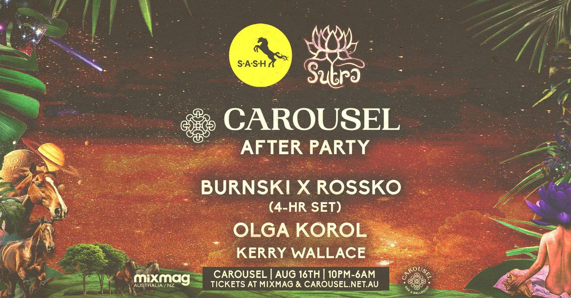 ★ S.A.S.H & SUTRA ★ CAROUSEL AFTERPARTY ★ Burnski x Rossko (4-Hrs) ★ Olga Korol ★ Sat 16th August ★