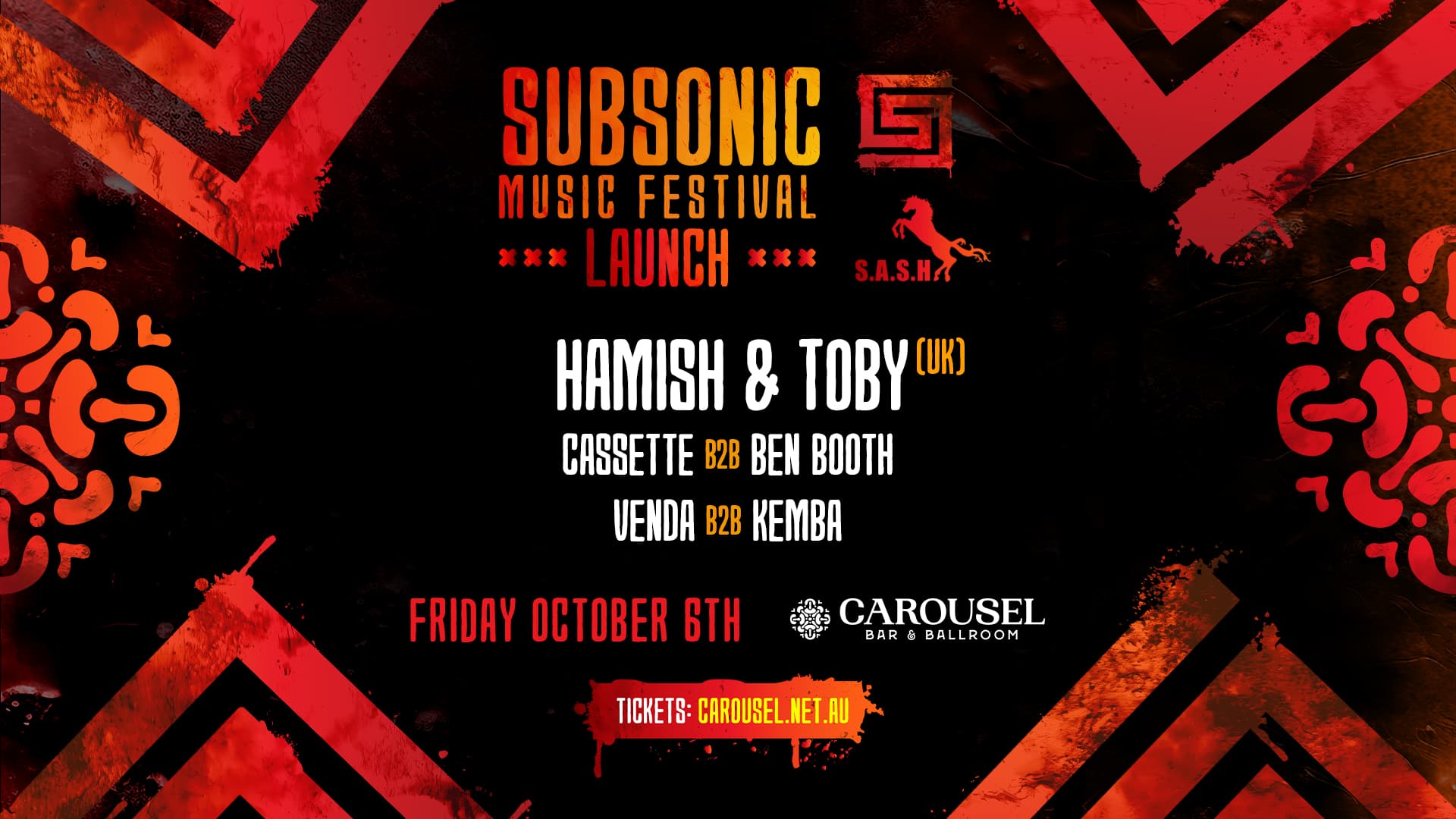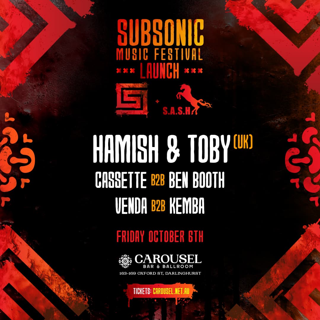 ★ S.A.S.H x Subsonic Stage Launch Party ★ Hamish & Toby ★ Friday 6th October ★